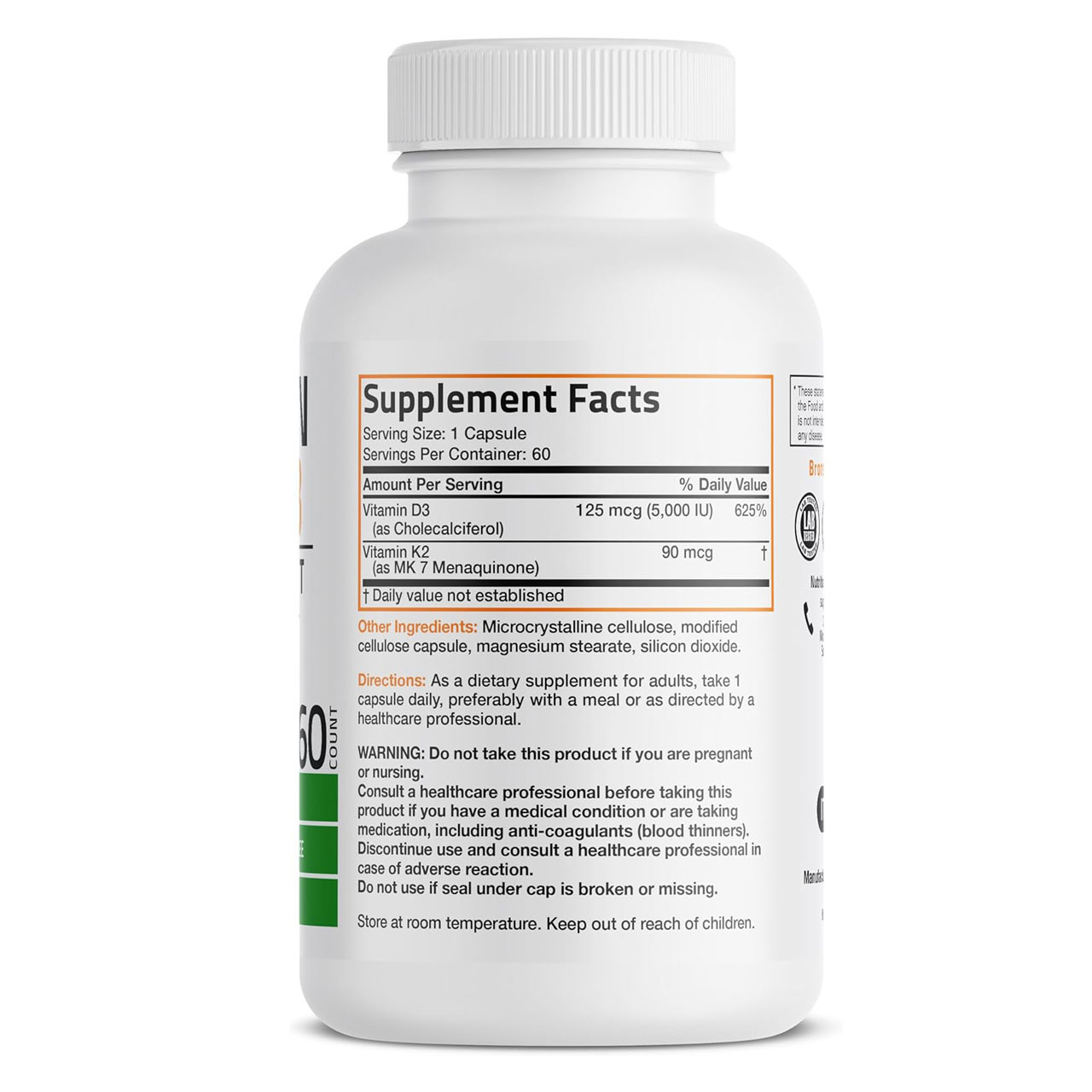 Bronson Vitamin K2 MK7 with D3 Supplement Non GMO Formula 5000 IU Vitamin D3 90 mcg 5