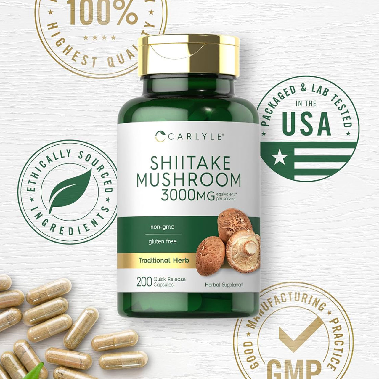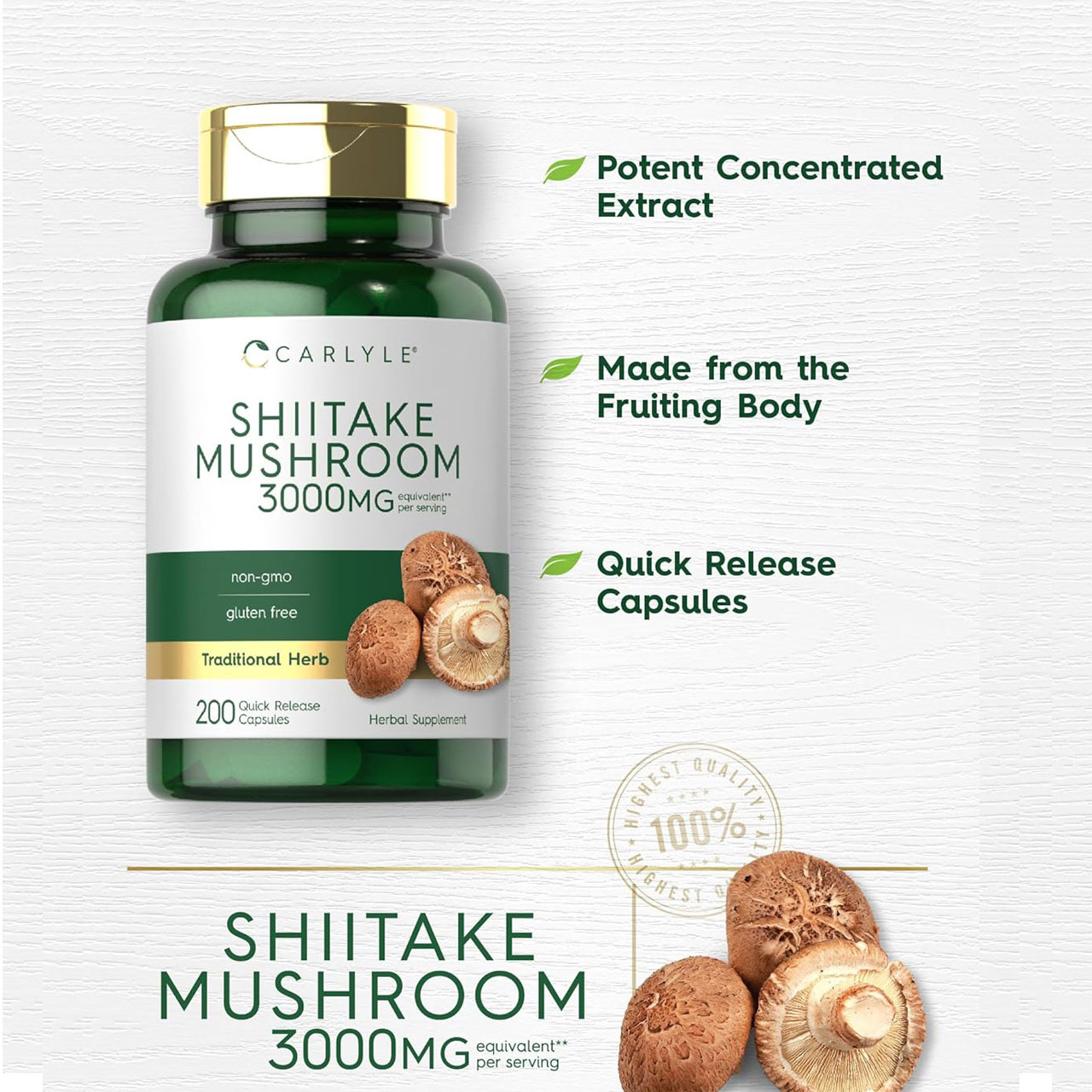 برند یا مدل Carlyle Shiitake Mushroom Extract | 3000mg | 200 Capsules